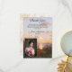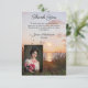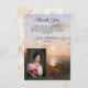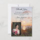 Memorial ou Cartões de agradecimentos fúnebre com fotos de funeral apresentando uma foto personalizada (opcional) emoldurada por um pôr do sol macio acima da água. Você pode substituir a foto frontal por sua própria foto personalizada. No verso estão duas opções para o plano de fundo oferecido no editor avançado. Um é o design de mármore e o outro a mesma imagem do pôr do sol que na frente. Você também pode adicionar outras fotos ao fundo. Uma forma atenciosa de agradecer a todos aqueles que estiveram presentes no funeral ou no memorial de um ente querido ou que ofereceram apoio de qualquer outra forma.