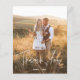 Esta simples e boho obrigado de casamento que você mostra sua foto de casamento na frente, com elegante e moderna tipografia manuscrita e um pequeno coração desenhado pela mão. A parte de trás da folha de papel é preto e branco e tem espaço para uma mensagem pessoal, juntamente com outra foto de casamento.