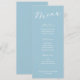 A light blue baptism menu card featuring soft pastel blue tones and elegant script lettering. This minimalist design adds a clean, modern touch to your boy’s baptism or christening reception while beautifully displaying your meal selections.