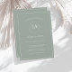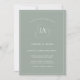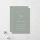 Simples Sage Green Monogramas Convite De Casamento. Estique seus convidados de casamento com este convite de casamento verde-moda com um belo roteiro branco, com as iniciais da noiva e do noivo em um fundo verde-sábio. Este Convite tem um design verde de musgo espantoso, com vibrações modernas e mínimas, perfeito para o seu casamento simples, moderado e minimalista. O layout mínimo e moderno chama a atenção para o roteiro inicial, em contraste com o fundo verde-claro. Este convite vai dar o tom para um belo cenário de casamento rodeado por florais verdes neutros ou seniores, e decor de casamento verde pastel. Uma adição perfeita a qualquer celebração moderna subestimada. O Coletivo de Domingo © por Rachel Hannah Gee