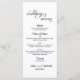 A simple Wedding menu with elegant calligraphy and a special photo overlay on the back with an editable monogram.