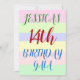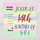 Este design de convite de aniversário divertido apresenta uma mensagem como "JESSICA'S 14 BIRTHDAY GALA", onde o nome e o número de aniversário podem ser personalizados. Ele também apresenta um fundo colorido, divertido e com temas geométricos. Os detalhes do evento no verso podem ser personalizados. Poderia ser usado para convidar pessoas para a festa ou festa de aniversário de alguém do décimo quarto aniversário. [~Z0000311]