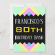 Este simples design de convite de aniversário apresenta uma mensagem como "A Bash de Aniversário do 80 FRANCISCO", onde o nome e o número de aniversário podem ser personalizados. Ele também apresenta um fundo divertido, colorido, inspirado na geometria. Os detalhes do evento no verso podem ser personalizados. Pode ser usado para convidar pessoas para uma festa de aniversário que está sendo realizada para alguém que está comemorando seu aniversário de 80.