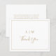 Simples cartões de agradecimentos de casamento orçamentário com um design moderno, mas elegante, com seu monograma de duas letras junto com "obrigado você" em uma letra manuscrita cercada por uma fina borda. O verso tem sua mensagem personalizada. Todos os elementos de design estão em ouro falso e podem ser alterados para qualquer cor desejada na ferramenta de edição de design. Um design chic e na moda que é excelente para um casal minimalista.