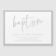 Este convite para o Batismo Bebê do Script Moderno apresenta um quadro simples, batismo com letra de mão e tipografia mínima. Clique no botão editar para personalizar este design.