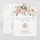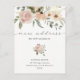Este simples e elegante anúncio de mudança para nova casa apresenta um buquê rústico boho de flores em aquarela e folhagens em tons neutros de terracota de pêssego e marfim, em um fundo branco. A tipografia de roteiro elegante diz "novo endereço", para a maneira estilosa perfeita de informar amigos e familiares que você se mudou.