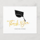 Personalize facilmente este elegante cartões de agradecimentos de orçamento de graduação moderno com seu nome clicando no botão "Personalizar". Esta placa apresenta um boné de formatura e um roteiro moderno que diz "Obrigado" em ouro falso que está definido.