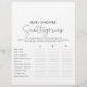 Este simples jogo de chás de fraldas de caligrafia é uma atividade divertida para um chá de fraldas rústico. O design apresenta uma bela fonte de caligrafia em um fundo branco para embelezar seu evento.