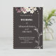 Este cartão de casamento preto e branco apresenta um elegante design floral que adiciona um toque de sofisticação e beleza ao cartão. O fundo e o lado direito exibem um delicado ramo floral, enquanto uma coleção de anéis florais enfeita o lado esquerdo. No topo, um buquê espantoso de flores completa o design, fazer este cartão perfeito para um casamento sofisticado e romântico.