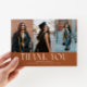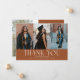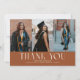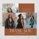 Cartão de foto de anúncio de graduação moderno e elegante com 3 fotos na frente e 1 no verso. O texto diz "OBRIGADO". Adicione o nome do graduado, informações e mensagem para personalizar este cartão. Cor terracota.