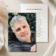 Esta elegante carta de oração do memorial fotográfico, com seu texto vermelho escuro, é uma bela maneira de se lembrar de um amado durante a celebração do serviço de vida. Isso faz uma bela manutenção para seus convidados.