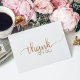 Este simples cartões de agradecimentos de caligrafia em ouro é perfeito para um chá de panela, casamento ou aniversário. O clássico design romântico apresenta uma falsa tipografia de folha de ouro e um adorável coração ouro. A parte de trás é vazio, então você terá bastante espaço para escrever uma mensagem personalizada e séria. Nota: Este design não apresenta folha de ouro real. É um gráfico de alta qualidade feito para se parecer com folhas de ouro.