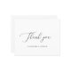 Cartões de agradecimentos de casamento clássico de orçamento branco com "Obrigado" em um roteiro delicado. Um layout simples sem gráficos torna isso um design elegante e eterno, perfeito para um casamento formal. Este cartões de agradecimentos não fotográfico é excelente para um casal que quer cartas de agradecimento sem fotos.