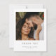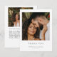 Elegante, na moda e obrigado de casamento simples, você modelo de 2 lados. Personalize a frente com uma foto de retrato favorita da noiva e do noivo, assim como um simples monograma sans serif dos nomes dos casais e da data do casamento. A parte traseira inclui uma segunda foto em formato quadrado com a mensagem do obrigado personalizado. Fácil de personalizar texto e fotos. Pegue o seu hoje!