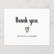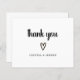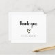 Cartões de agradecimentos moderno de casamento orçamentário com um simples e fofo design com "obrigado você" em uma escrita grossa, junto com um coração e seus nomes. O verso tem sua mensagem personalizada a preto sobre um fundo branco. Este Cartões de agradecimentos de casamento minimalista e não fotográfico é excelente para um casal que quer Cartões de Obrigado sem fotos.