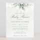 Belo convite para chás de fraldas de orçamento com aquarela eucalipto e folhas de ouro.