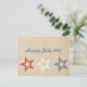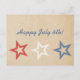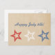 Simple Chic Stars 4 de julho Cartão postal com um fundo de papel texturizado falso e um trio de estrelas vermelhas, brancas e azuis. Este na moda é uma escolha excelente para desejar aos amigos e à família um Feliz 4 de julho! Fácil de personalizar, basta adicionar a mensagem de saudação ou personalizada de sua escolha. Esta design também é apropriada para um Dia Memorial.