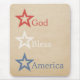 Simple Chic Stars 4 de julho Mousepad com um fundo de papel texturizado falso e um trio de estrelas vermelhas, brancas e azuis. Este na moda é uma maneira excelente de mostrar seu lado patriótico em casa ou no escritório! O produto mostra a frase América Deus abençoe, mas pode ser personalizado com seu próprio texto.