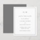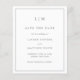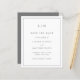 Um simples orçamento salve a data com um design moderno, mas elegante, com seu monograma de duas letras no topo e seus detalhes de casamento cercados por uma fronteira fina. Todos os elementos de design estão na cinza e podem ser alterados na ferramenta de edição design. Um design chic e na moda que é excelente para um casal minimalista.