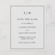 Um simples orçamento de cinza leve economiza a data com um design moderno, mas elegante, com suas duas letras de monograma no topo e seus detalhes de casamento cercados por uma borda fina. Um design chic e na moda que é excelente para um casal minimalista.