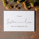 Um cartão de presente simples e minimalista para escrever uma mensagem pessoal e sincera para a sua cunhada no dia do seu casamento. Totalmente personalizável com suas cores favoritas (texto e fundo). Você pode adicionar uma mensagem no verso ou excluir e deixá-la vazio se preferir escrever manualmente a mensagem mais tarde.