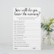 "Como Você Conhece Mamães?" Quem melhor conhece a futura mãe? Simples chá de fraldas de manutenção ou gênero revelam jogo de festas com um roteiro divertido e casual. O clássico design inclui uma moderna camada de tipografia de citações feitas à mão. Para outras cores ou produtos correspondentes, visite a loja justFharryn Zazzle ou entre em contato com o designer, c/o Fharryn@yahoo.com Todos os direitos reservados. #bohochic #zazzlemade
