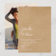 Convite de casamento simples rústico kraft com letra natural apresentando um design clássico que apresenta os nomes do casal feliz em uma letra elegante acima dos detalhes especiais do casamento em um fundo kraft rústico natural. O verso apresenta sua foto especial. Projetado por Thisisnotme©