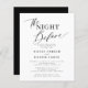Elegante e simples, preto e branco limpo, "a noite anterior", ensaio de barato do janto BUDGET, com um roteiro de caligrafia na moda clássico. ++++++++++++ Fácil de personalizar com seus detalhes! O convite é adequado para comemorações elegantes do ensaio de casamento.