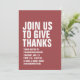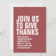 Com uma tipografia branca ousada, este janto de Ação de Graças mauve é facilmente personalizado e dá o tom para um banquete divertido e casual do dia da turquia