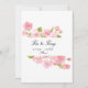 Um simples convite para o casamento com um quadro floral dá um sentimento de suavidade e sofisticação Um convite branco com lindas flores cor-de-rosa acompanhado dos nomes da noiva e do noivo, data, hora e lugar O verso contém a frase "Junte-se a nós para uma celebração do amor"