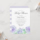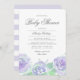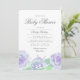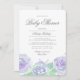 Estes bonitos convites para bebês apresentam flores de cor d'água pintadas manualmente em roxos, verdes e menta na parte inferior do cartão. A cor do plano de fundo pode ser personalizada, se desejado.