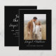 Orçamento Personalize este Boho Black and White Photo Simple e Elegante Double Sided Salve o Convite de Data com sua mensagem e detalhes. Este convite chic inclui a tipografia de escrita manuscrita na moda moderna e elegante para a celebração do Casamento Especial a Ser.