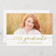 Trendy moderno cartão com fotos convidando sua família e amigos para a festa de formatura de sua filha. Convite para Festa de formatura de Script de Manuscrito em Folha Ouro Simples para 2015. Design por Elke Clarke © Visite nosso compro www.zazzle.com/monogramgallery* para mais designs e estilos. Adicione sua própria foto e texto. Uma camada de texto simples de tipografia de folha de ouro (efeito fotográfico impresso) com a menção "Formando 2015". Substitua a foto de exemplo por sua. Cor branca e dourada. Outros estilos e cores disponíveis.