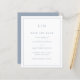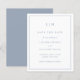 Um simples orçamento salve a data com um design moderno, mas elegante, com seu monograma de duas letras no topo e seus detalhes de casamento cercados por uma fronteira fina. Todos os elementos de design estão em azul empoeirado e podem ser alterados na ferramenta de edição de design. Um design chic e na moda que é excelente para um casal minimalista.