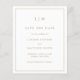 Um simples orçamento salve a data com um design moderno, mas elegante, com seu monograma de duas letras no topo e seus detalhes de casamento cercados por uma fronteira fina. Todos os elementos de design estão em dourado falso e podem ser alterados na ferramenta de edição de design. Um design chic e na moda que é excelente para um casal minimalista.
