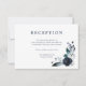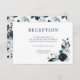 Um cartão de recepção boho floral azul-marinho, onde você pode fornecer detalhes das atividades pós-casamento.