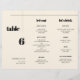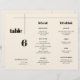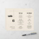 Menu de casamento triplo e número da mesa: tudo em um, basta dobrar a folha de papel em 3 para obter o menu de pé. Minimalista, porém impressionante: adote esta design tipográfica ligeiramente retrorreflectora para a sua papelaria de casamento, com uma elegante cor creme. Texto, cores e fundo totalmente personalizáveis.