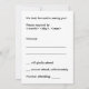 Este simples e humilde design de placa RSVP apresenta a mensagem "R.S.V.P." na frente, juntamente com um nome de evento personalizado. Ele também apresenta um formulário de RSVP personalizável na parte traseira para que o destinatário seja concluído. Cartões de RSVP como este podem ser usados para descobrir quem vai participar de um chá de fraldas, de uma festa de janto, de um chá de casamento, de uma festa de Natal ou de outra celebração.