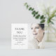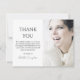 Um simples cartão de agradecimento de funeral para enviar às pessoas que demonstraram amor, gentileza e apoio durante o seu momento de luto. O design apresenta um fundo branco clássico, uma fotografia do seu ente querido que faleceu e uma mensagem doce de agradecimento que pode ser facilmente personalizada. O texto usa uma combinação de fontes serifadas elegantes e caligrafia manuscrita.