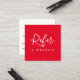 Cartão de referência simples vermelho quadrado e branco para profissionais ligados à beleza. Design simples, totalmente personalizável.