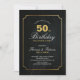 Este convite para o 50º aniversário com na moda de ouro simples e tipografia negra. Você pode personalizar todos os textos e cores.
