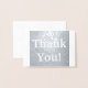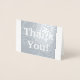 Este simples e elegante design de obrigado de cartão de folha prateada - você cumprimenta a mensagem "Obrigado!" na frente, junto com uma mensagem personalizada no dentro. Poderia ser usado para mostrar apreço a alguém que fez algo especial.