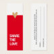 Cartão de referência simples de vermelho e branco MINI para profissionais de beleza. Design simples e limpo com coração de ouro falso, totalmente personalizável.