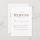 Cartão de Resposta de RSVP de Casamento Branco. Jantar & Dança. Fonte Moderna. Fonte Combinada. Texto Dourado. Floral Amarelo.