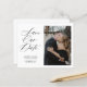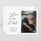O casamento do BARATO BUDGET, com a forma minimalista de um arco cômico, salve o cartão de data em preto e branco simples com um moderno roteiro elegante de caligrafia. ++++++++++ Adequado para quaisquer casamentos temáticos modernos de classe sazonal.