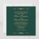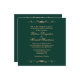 O deslocamento do ouro acentua frente e trás com texto correspondente. Verde escuro e este olhar simples e sólido é fantástico para uma noite ou casamento no inverno. Coloque os primeiros nomes da noiva e do noivo junto com a data do casamento de um lado dando aos seus convites uma sensação menos formal. Por outro lado, as informações pertinentes do casamento acrescentam um talento clássico. Ao fazer seus convites, verifique triplamente todos os seus ortografia e datas.