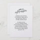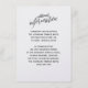 Este simples cartão de núpcias apresenta um aspecto preto e branco minimalista com um roteiro desenhado à mão. É perfeito para mais detalhes de casamento ou alojamento. Sugerimos a impressão em estoque de cartão metálico para um casamento formal mas moderno ou para uma aparência mais luxuosa.