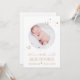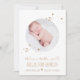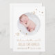 Compartilhe a notícia do nascimento do seu bebê com este anúncio de nascimento do bebê "Bem-vindo ao mundo", simples estrelas de ouro e design da Lua. Personalize com foto, data de nascimento, peso, comprimento e o nome do seu bebê.