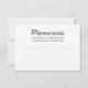 Simples Tipografia das Memórias. Este cartão é um pedido para amigos e familiares partilharem quaisquer memórias maravilhosas de alguém especial.