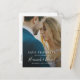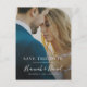 Este simples casamento de fotos chic, salvar o cartão postal tem uma design elegante e minimalista. Os recursos frontais SAVE O texto DATA acima dos seus nomes e data e local do casamento. Este texto é branco e seus nomes são destacados com uma fonte viva e caprichosa de escrita manual que dá um senso de calor e familiaridade a esse olhar moderno minimalista. No verso, definimos o plano de fundo como transparente para permitir que a cor do papel sirva simplesmente como a cor base. Você pode escolher uma cor para o plano de fundo, se preferir. Você também pode editar o texto de acordo com as suas necessidades. Escolhemos uma ordem atípica para as informações no verso, colocando o texto "Por favor, salve a data" depois do texto "para o casamento de", que empresta a ele um charme menos viajado. Você pode, é claro, mudar isso se preferir. Talvez você queira excluir um campo de texto que não precisa ou alterar a cor ou a fonte de algum texto. Escolhemos tons de cinza para o texto no verso, mas você pode facilmente mudar para outra cor ou cores para se adequar ao seu estilo. Use as ferramentas intuitivas de design, sua foto favorita e sua inspiração para fazer com que esse casamento de na moda guarde o cartão postal exclusivamente seu. E verifique nosso compro por cartas achatadas e versões de ímãs deste design, junto com uma grande seleção de outro casamento moderno minimalista, salve as datas!